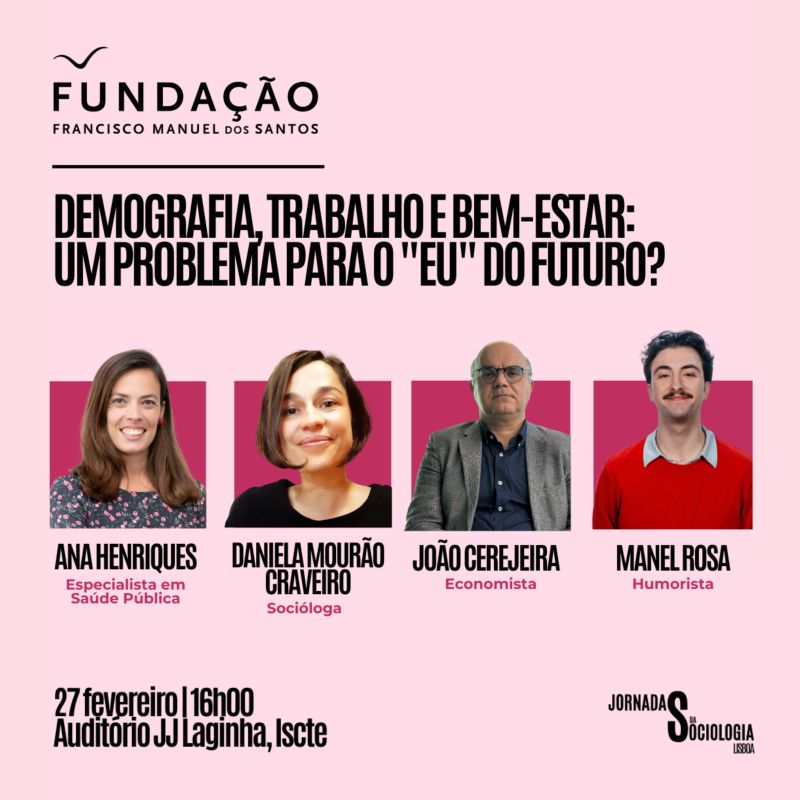 Esta sexta-feira, às 16h, no Iscte – Instituto Universitário de Lisboa, reúnem-se a socióloga Daniela Craveiro, o economista João Cerejeira e a investigadora em saúde pública Ana Henriques. A moderação estará a cargo do humorista Manel Rosa.
