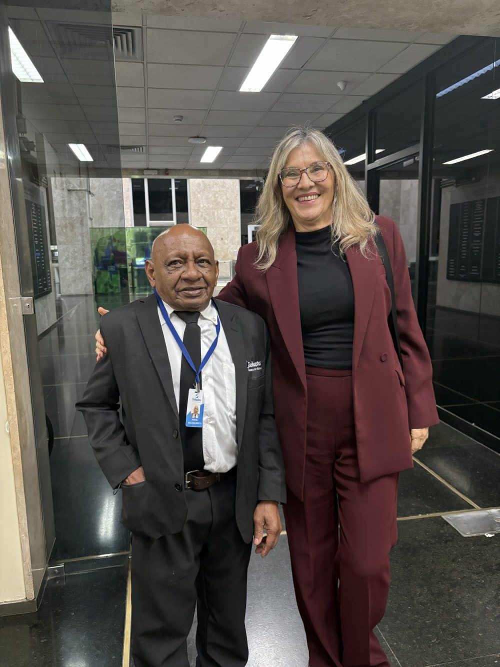 Um dos momentos mais emocionantes do evento foi a presença do Sr. Manoel Cristino, de 84 anos, integrante da chamada Geração Silenciosa. Funcionário terceirizado da Justiça Federal, ele sempre esteve lotado no Fórum Pedro Lessa, desde sua inauguração nos anos 1980. Sua trajetória discreta, dedicada e amorosa carrega a memória viva daquela instituição.